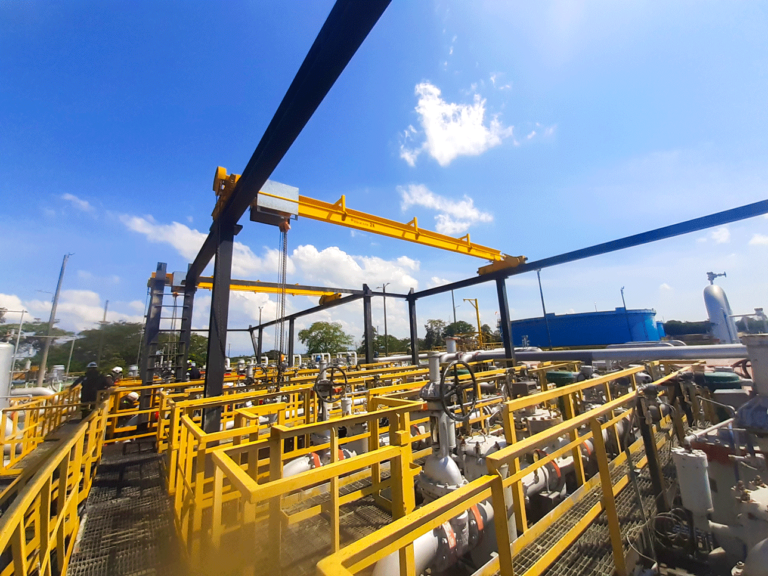 Se realizó la instalación de un puente grúa con apoyos en columnas metálicas, diseñado para optimizar el manejo de bombas en una planta de tratamiento de aguas residuales (PTAR). El sistema fue implementado con estructura independiente para facilitar maniobras seguras y continuas en un entorno técnico especializado.