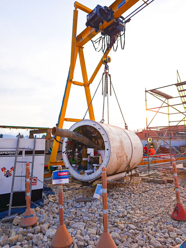 El equipo fue instalado en un entorno de trabajo al aire libre, sobre terreno con preparación técnica para soportar las cargas dinámicas del proceso. El pórtico cuenta con motorización para desplazamiento longitudinal y transversal, facilitando el posicionamiento preciso de materiales como estructuras metálicas, sistemas de perforación y módulos constructivos.